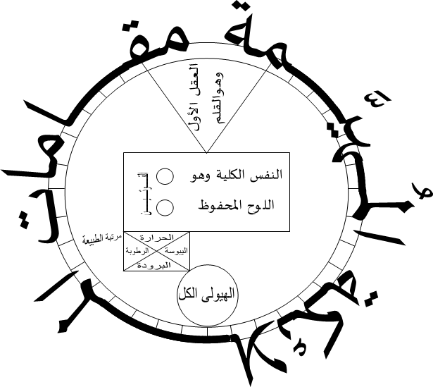 [37] انظر الشكل الأصلي الذي وضعه ابن العربي في الباب 371 من الفتوحات المكيّة: ج3ص422.