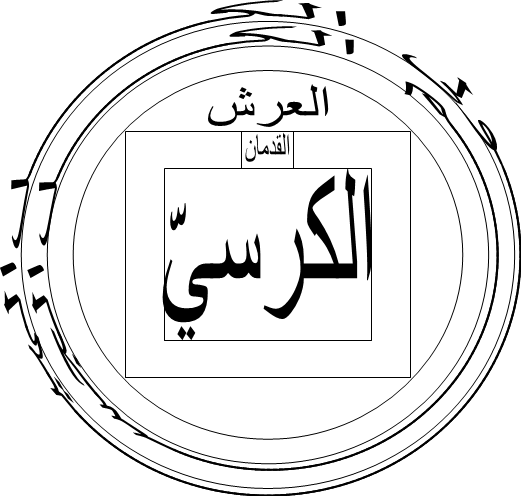 الشكل 3: الكرسي وما يحويه من الأفلاك مثل فلك البروج والجنان وفلك المنازل.[43]